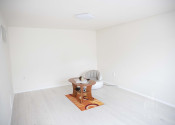 Na opačnej strane chodby sú ďalšie dve izby - priestranná spálňa a detská izba. V spálni je veľká vstavaná skriňa a sprchovací kút. Vedľa spálne sa nachádza samostatné WC, priestranná kúpeľna s vaňou a sprchovým kútom. Vedľa kúpelne je detská izba, z ktorej sa tiež dá vyjsť na terasu a dvor.